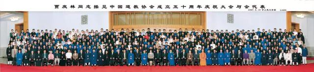 2007年9月19日,中国道协举行成立50周年庆祝大会。中央政治局常委、全国政协主席贾庆林,中央政治局委员、国务院副总理回良玉,全国政协副主席、中央统战部长刘延东等中央领导出席并会见与会代表。下午,举行了中国道协七届二次理事会议。(图片由中国道教协会提供)