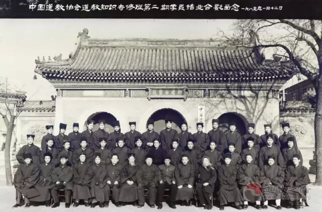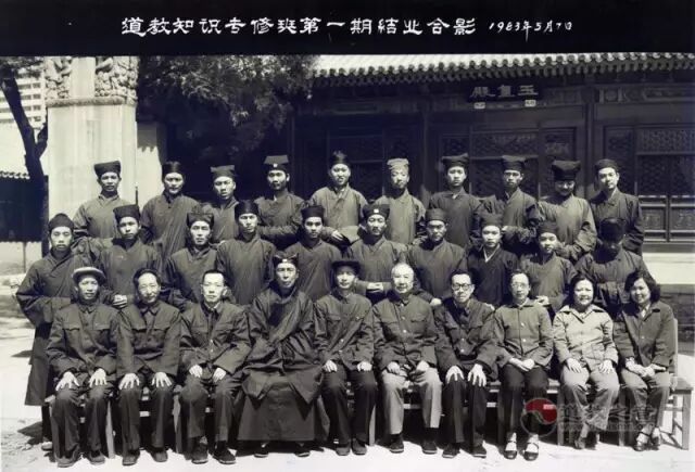 中国道教协会第三次代表会提出了培养道教人才的工作任务,一九八一年下半年常务理事会制订了《道教知识专修班计划》,在道教徒及信教群众中,培养一批有志于道教事业而又具备道教基础知识的人员,为今后管理道教名山宫观和办好教务,作准备工作。在国务院宗教事务局的领导和支持下,道教知识专修班 (第一期)在一九八二年十一月一日开学,并于一九八三年五月七日结业。图为道教知识专修班第一期结业合影(王伟业、秦京光藏,周金富提供)