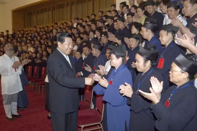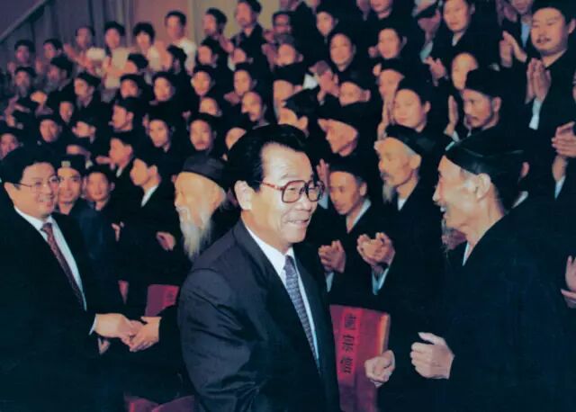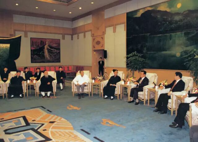 1998年8月20日至24日,中国道协第六次全国代表会议在京召开。中央政治局常委、全国政协主席李瑞环接见全体代表。全国政协副主席、中央统战部部长王兆国,国家民族事务委员会主任、中央统战部副部长李德洙、国家宗教事务局局长叶小文等领导到会祝贺。(图片由中国道教协会提供)