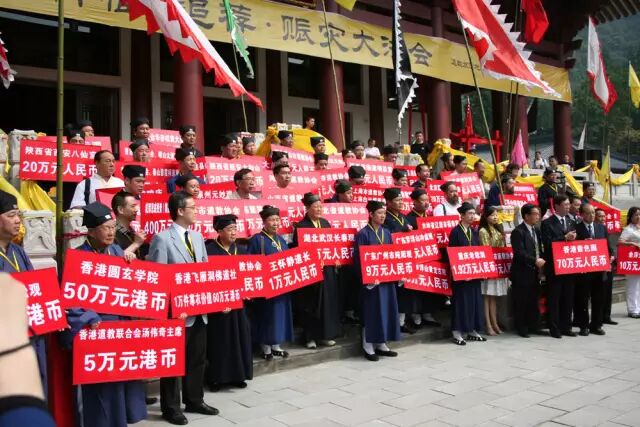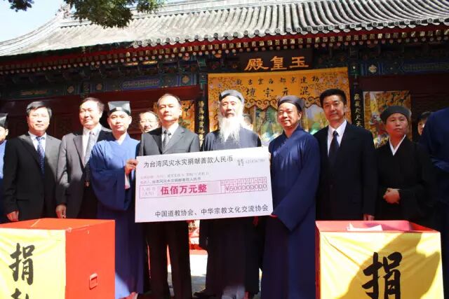 2009年8月,台湾中南部地区发生特大风灾水灾。20日两岸三地道教界分别在北京白云观、香港圆玄学院、台北指南宫举行祈福解厄追荐法会并组织捐款活动。(图片由中国道教协会提供)
