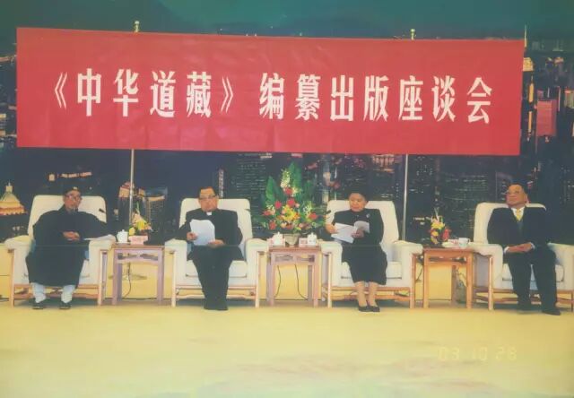 2003年10月28日,《中华道藏》出版座谈会在京举行。历时七年的《中华道藏》编辑整理工作宣告完成。全国人大副委员长傅铁山,全国政协副主席、中央统战部长刘延东,中国残疾人联合会主席邓朴方等领导出席座谈会。这是明代《道藏》之后,首次对道教经书进行系统规范性整理重修,被列入“十五”国家重点图书出版规划项目。(图片由中国道教协会提供)